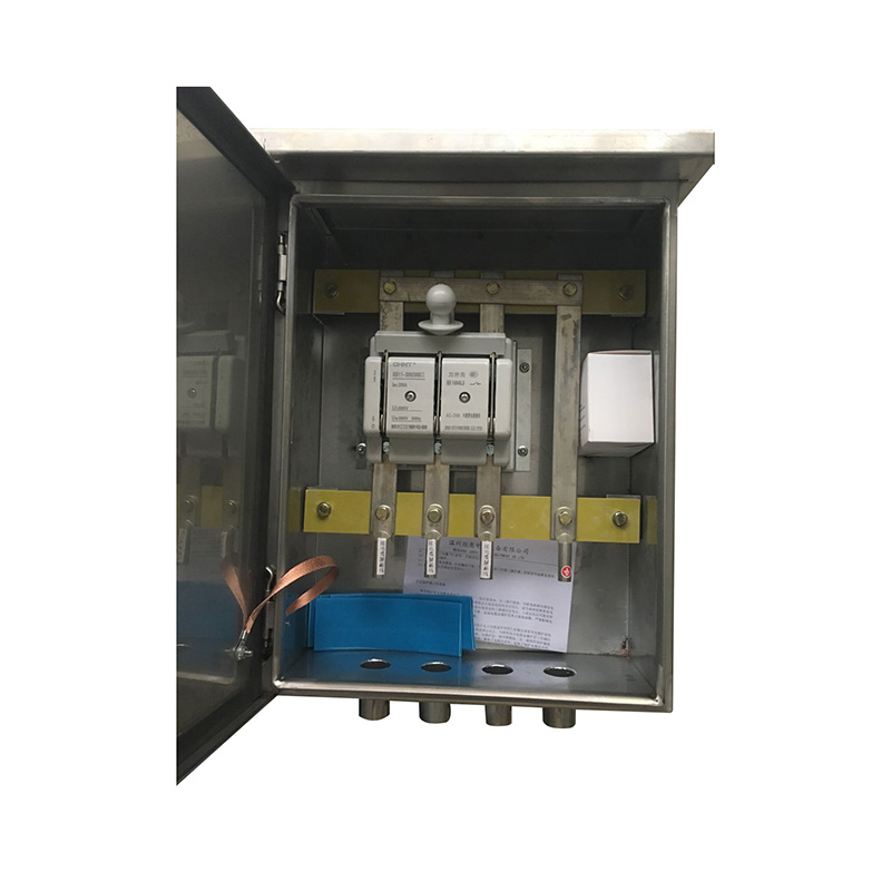 单从电缆护层的保护要求来讲,仅仅使用电缆护层保护器是可以实现这个目标的,但是从系统的安全角度看,这样的措施是不完善的,所以将保护器置于箱体内构成电气总体,这就是电缆接地箱的应用意义。它的好处是:工况条件下的护层保护器上的感应电压持续存在,被绝缘件隔离,又被箱体封闭在一个有效的绝缘结构里,它不会对其他非等电位点产生放电,所以有了箱体后系统的主电压作用是安全的;箱体的金属外壳采用不锈钢壳体制造,并且使之接地,电磁效应少,壳体表面的泄露电流流回大地,箱体对人和动物来讲是安全的;接地电缆引入箱体后,可通过箱体里已经预置好的结构排布方式进行连接,避免接线零乱和复杂化,安装的方便性和正确性得以实现。