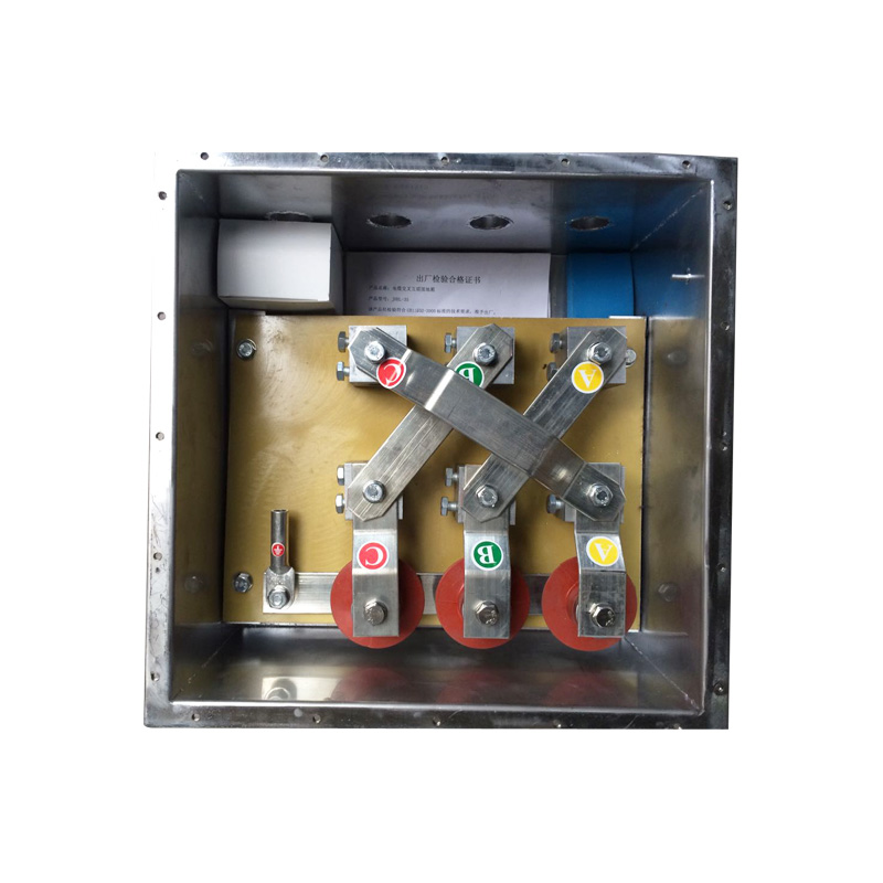 单从电缆护层的保护要求来讲,仅仅使用电缆护层保护器是可以实现这个目标的,但是从系统的安全角度看,这样的措施是不完善的,所以将保护器置于箱体内构成电气总体,这就是电缆接地箱的应用意义。它的好处是:工况条件下的护层保护器上的感应电压持续存在,被绝缘件隔离,又被箱体封闭在一个有效的绝缘结构里,它不会对其他非等电位点产生放电,所以有了箱体后系统的主电压作用是安全的;箱体的金属外壳采用不锈钢壳体制造,并且使之接地,电磁效应少,壳体表面的泄露电流流回大地,箱体对人和动物来讲是安全的;接地电缆引入箱体后,可通过箱体里已经预置好的结构排布方式进行连接,避免接线零乱和复杂化,安装的方便性和正确性得以实现。